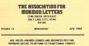 The Association for Mormon Letters Awards Ceremony will be held online, June 20, 2026, 3:00-6:00pm, Mountain time, and broadcast live on Youtube.